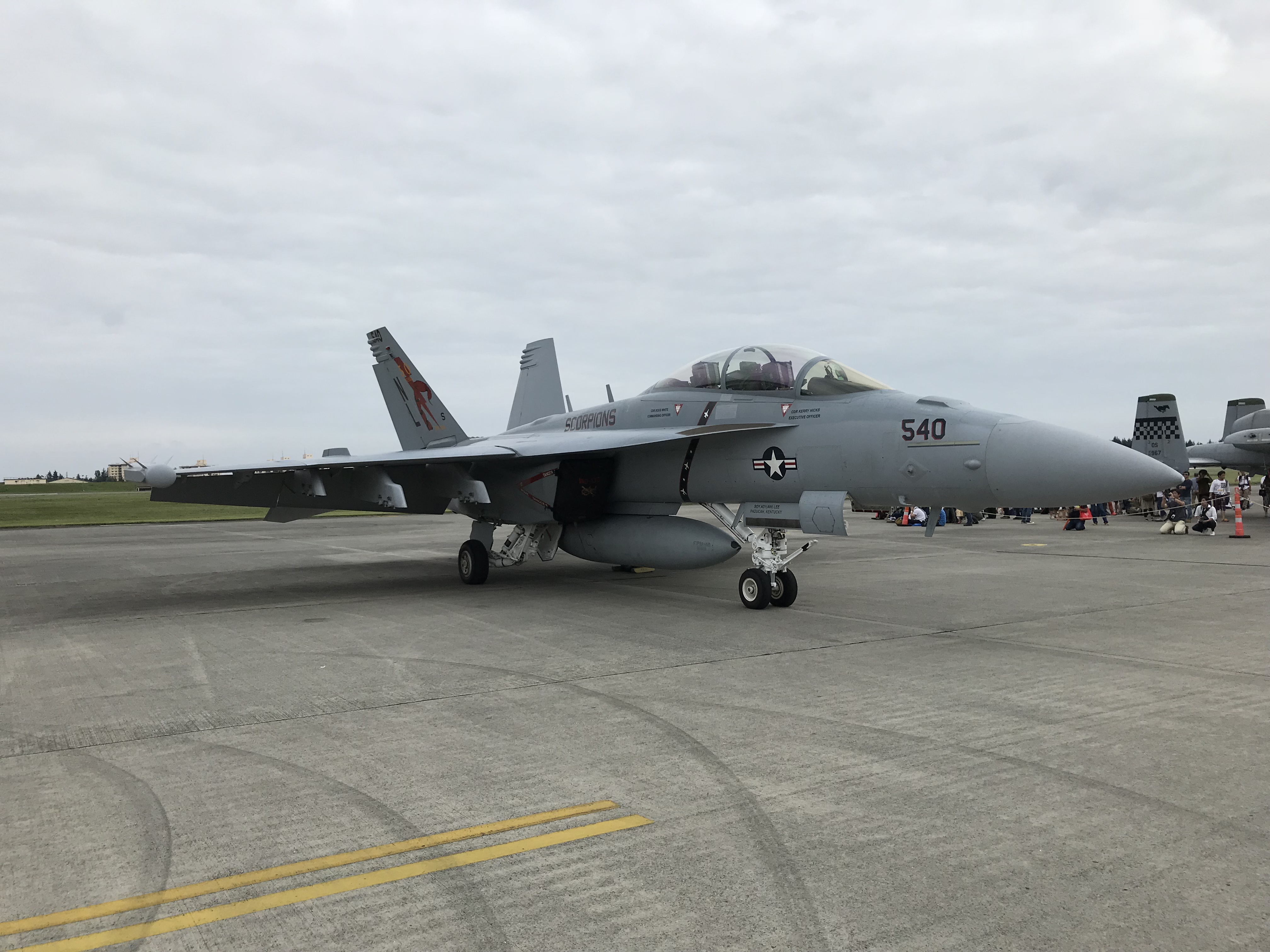 展示されてる飛行機は、正式名称は不明だが、F16、F15、F18(展示パネルにはEA-18G グラウラーと表記)、自衛隊のF4ファントム(正式名称は不明)、軽攻撃ヘリコプターAH-1Zヴァイパー、オスプレイや米軍輸送機、自衛隊の輸送機など様々な種類が展示されていた。